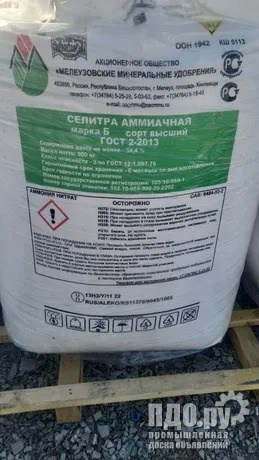 1. Аммиачную селитру ГОСТ 2-2013, марка Б для растениеводства, упаковка Биг-беги или мешки по 50 кг. Цена для сельхоз-товаропроизводителей от 20748, 00 – 21672, 00 руб/тн с НДС самовывоз. Отгрузка Мелеуз и Менделеевск авто/железнодорожным транспортом.